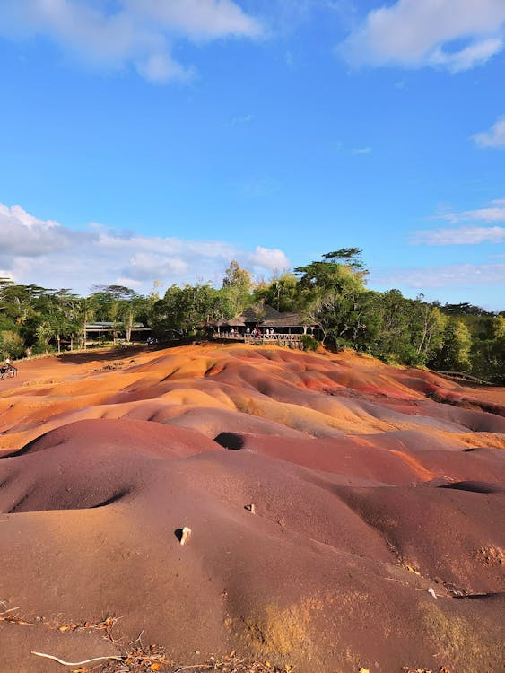 The Seven Coloured Earth with its rippled dunes of reds, violets and ochres looks like a landscape from another planet. The nearby Chamarel waterfall plunges into a lush forested gorge creating a spectacular natural scene.